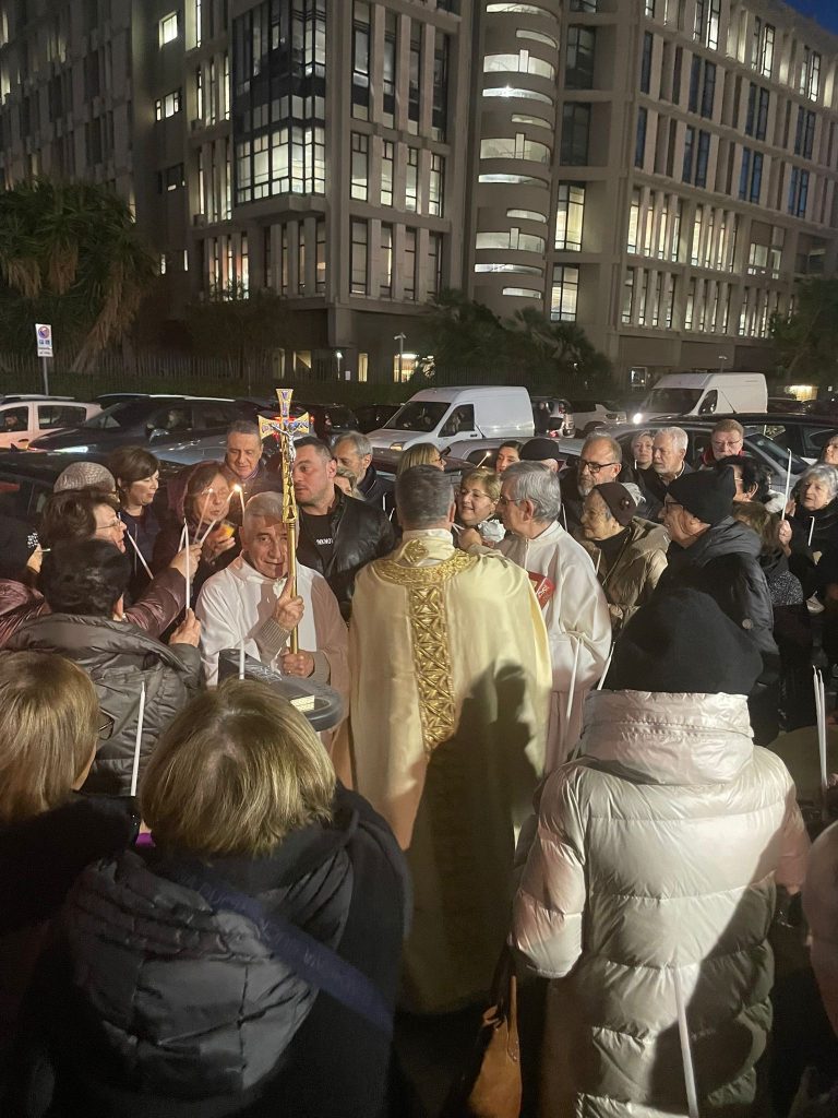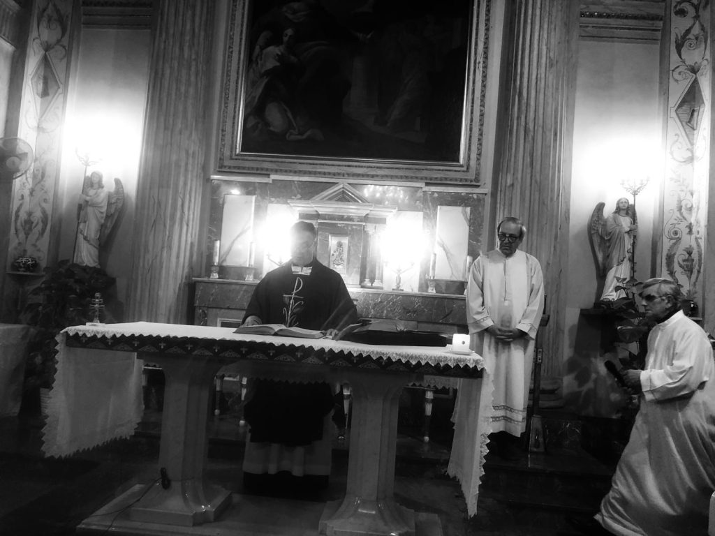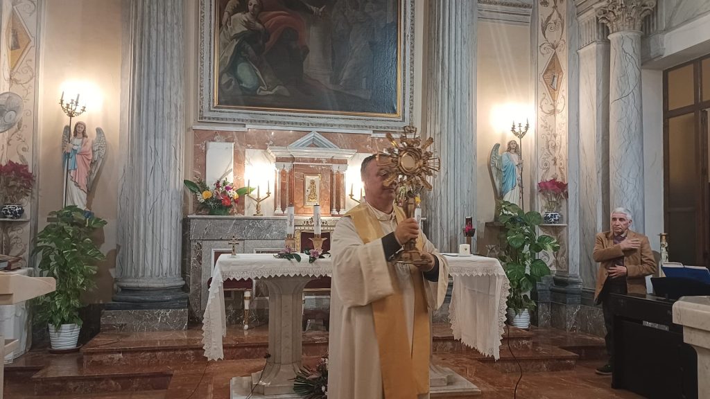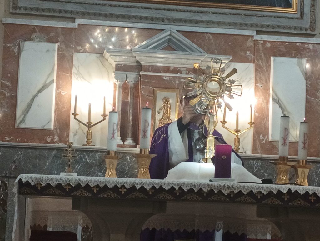 La chiesa non è molto affollata, fuori c’è vento anzi siamo in “allerta meteo”, ma questa piccola comunità di fedeli ha preferito vivere un “allerta ” più forte :” stare con Gesù